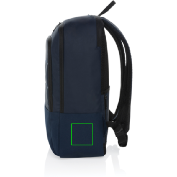 Das schlichte Design macht den Rucksack äußerst vielseitig und ideal für Arbeit und Freizeit. Er ist schick genug für den Sitzungssaal, bietet aber dennoch die Bequemlichkeit und den Komfort eines Rucksacks. Schützen Sie Ihren 15,6"-Laptop mit dem separaten, gepolsterten Rückenfach. In der bequemen, leicht zugänglichen Deckeltasche können Sie bei der Sicherheitskontrolle oder beim Zoll Ihre wichtigsten Gegenstände wie Reisepass, Ticket oder Smartphone verstauen. Die Netztaschen im Inneren sorgen für Ordnung bei Ihren kleineren Utensilien. An der Seite befindet sich ein Gepäckanhänger. Hergestellt aus recyceltem Polyester, das mit dem AWARE™-Tracer versehen ist. 2% des Erlöses aus jedem verkauften Produkt mit AWARE™ werden an Water.org gespendet. PVC-frei.