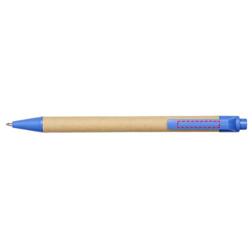 Umweltfreundlicher Kugelschreiber mit Klickmechanismus, einem Schaft aus biologisch abbaubarem Papiermaterial und Verzierungen aus Mais-Kunststoff in verschiedenen Farben. Die Farbe des Recyclingkartons kann variieren.