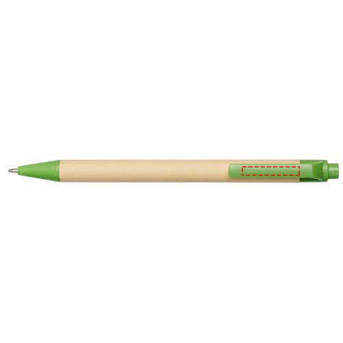 Umweltfreundlicher Kugelschreiber mit Klickmechanismus, einem Schaft aus biologisch abbaubarem Papiermaterial und Verzierungen aus Mais-Kunststoff in verschiedenen Farben. Die Farbe des Recyclingkartons kann variieren.