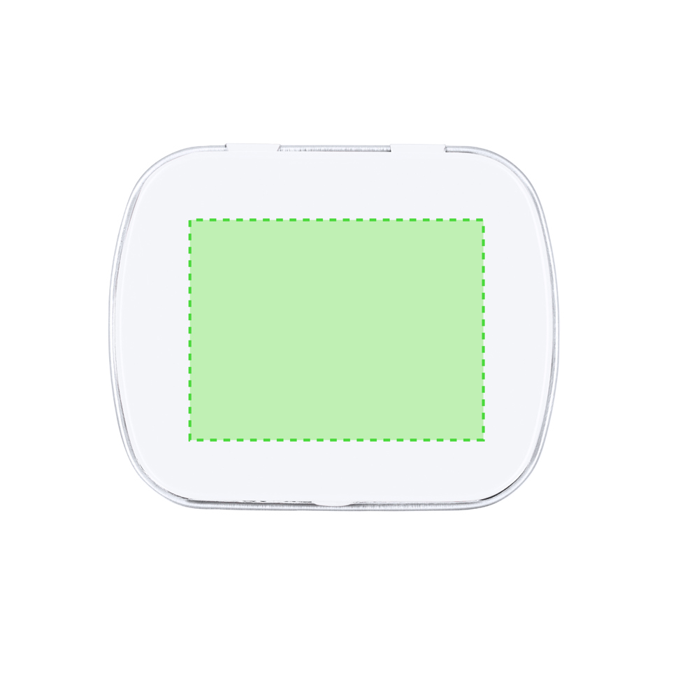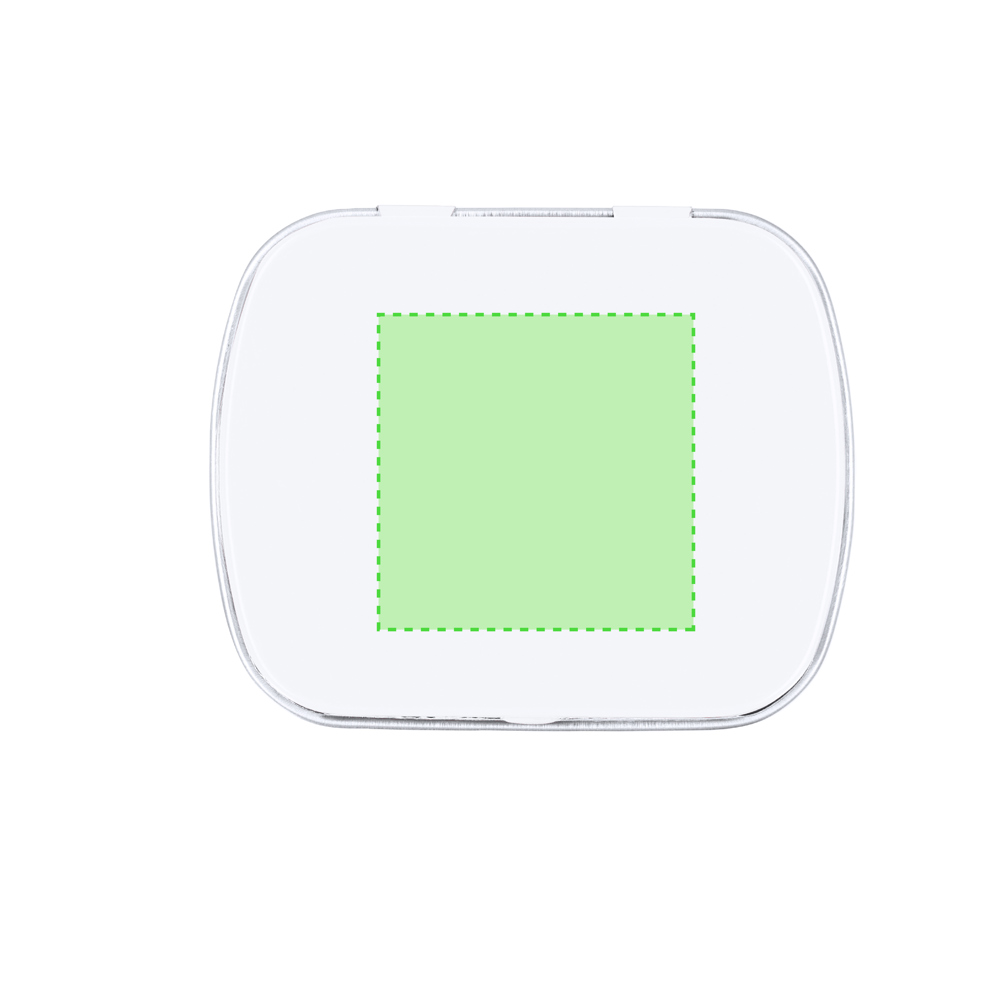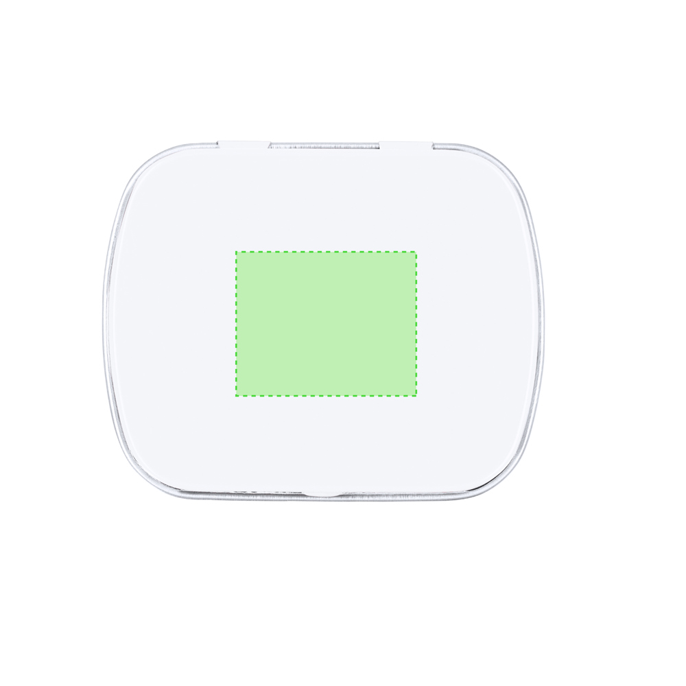Spender mit zuckerfreien Minzbonbons, 23 g. Präsentiert in einer Metallbox mit Klappdeckel.