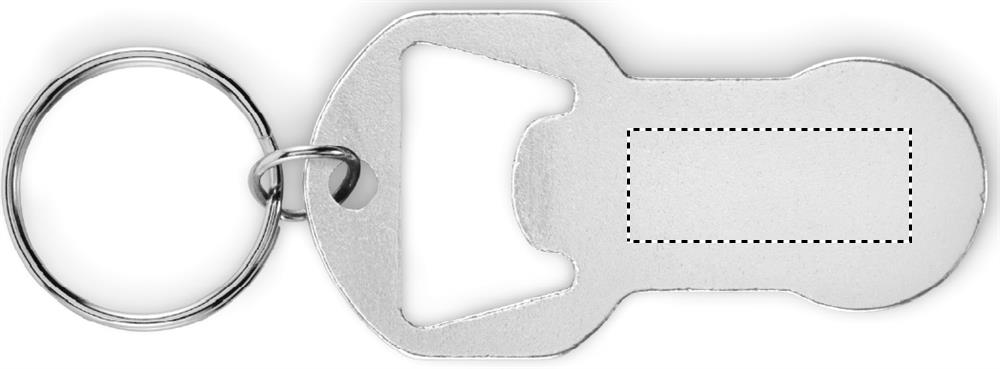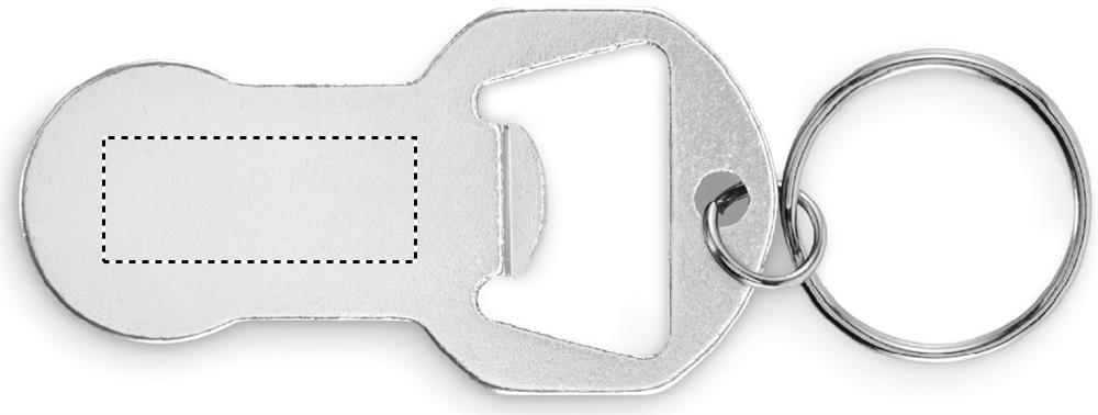 Schlüsselhalter aus recyceltem Aluminium mit Flaschenöffner und Telefonhalterfunktion. Enthält ein lasergraviertes Logo aus recyceltem Aluminium.