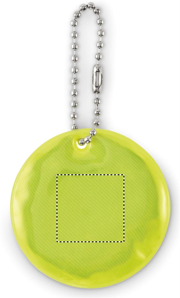 Runder reflektierender Schlüsselanhänger aus PVC. Für Werbezwecke.