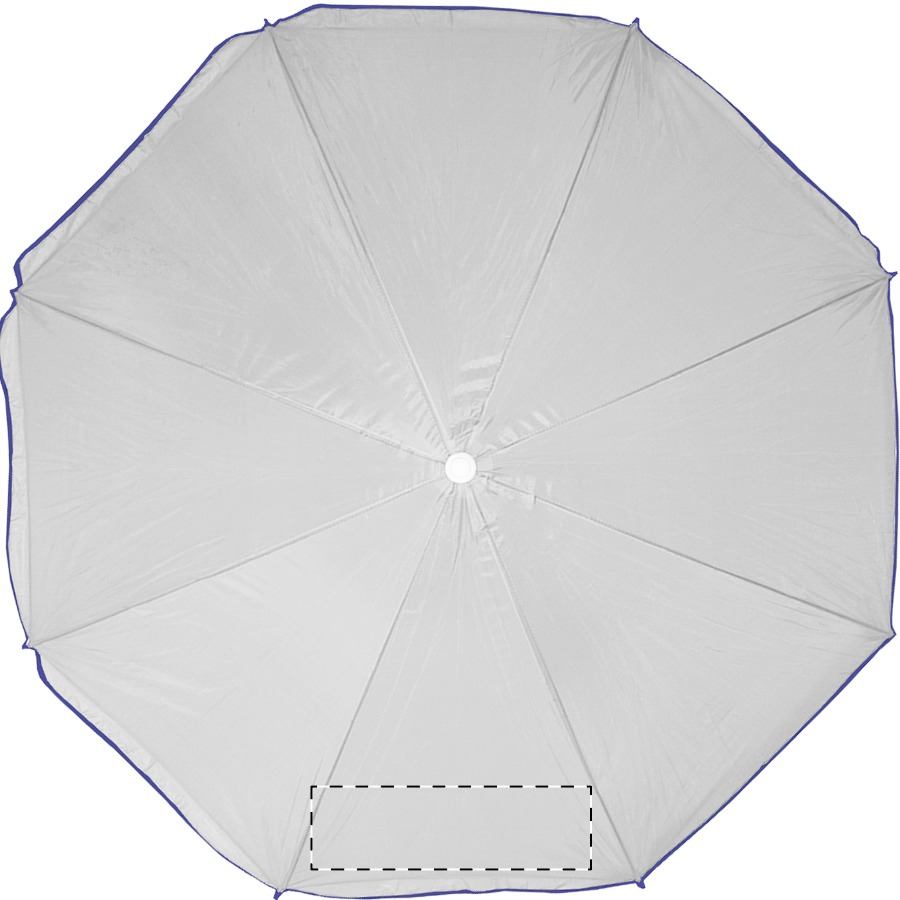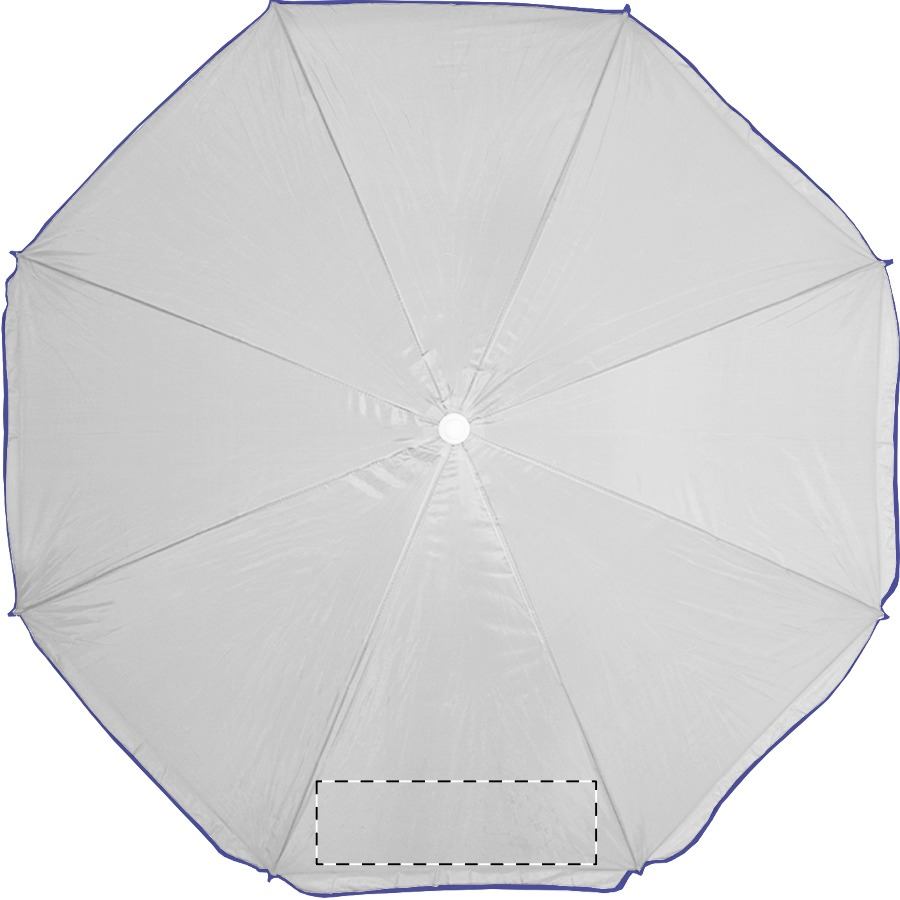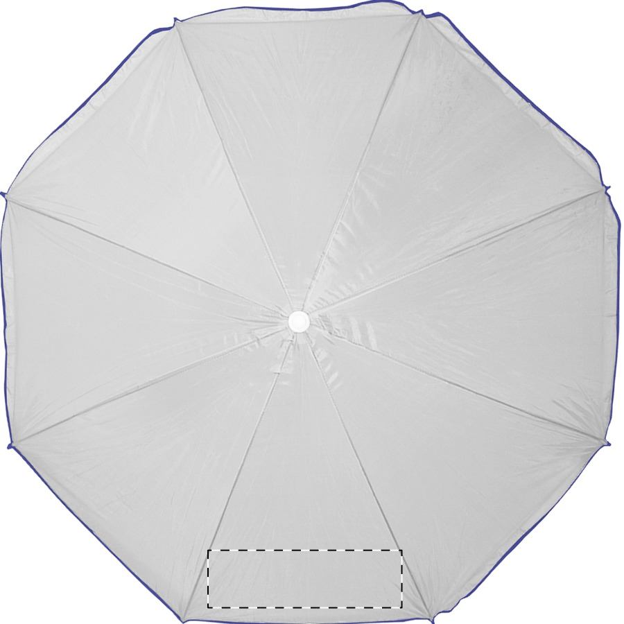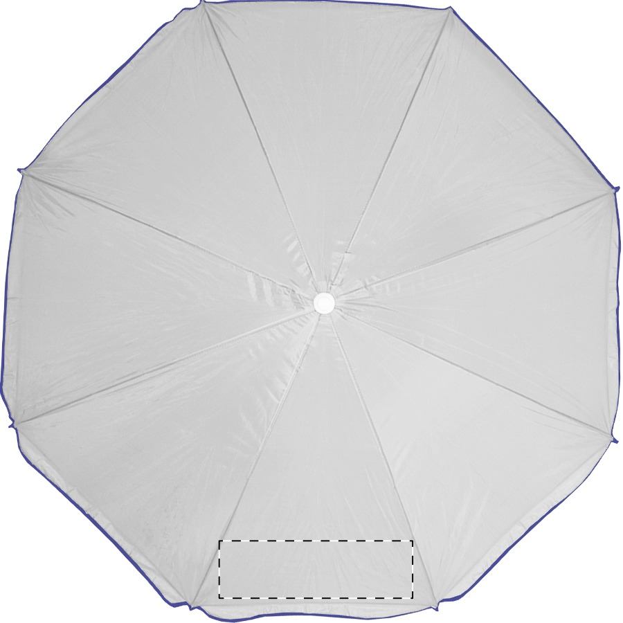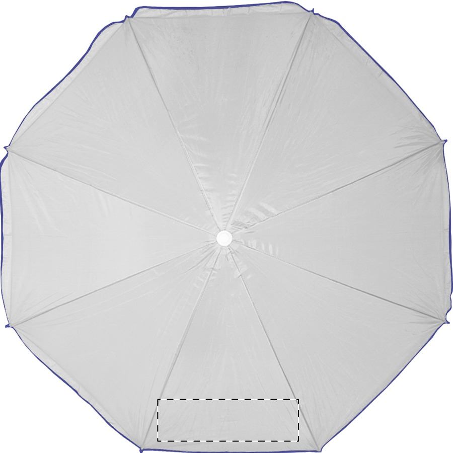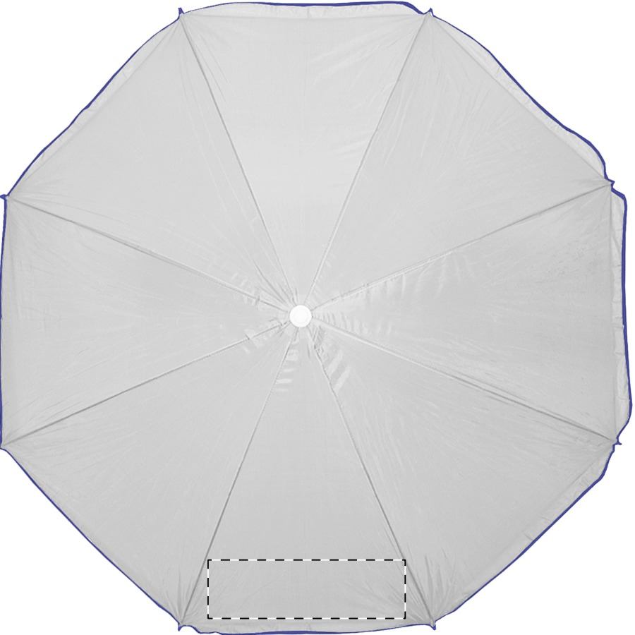 8-teiliger Sonnenschirm mit farbigem Rand und weißem Metallstab. Material: Nylon. TNT 70g.