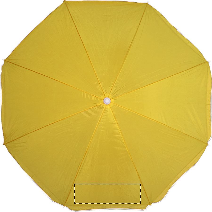 8-teiliger Sonnenschirm mit farbigem Rand und weißem Metallstab. Material: Nylon. TNT 70g.
