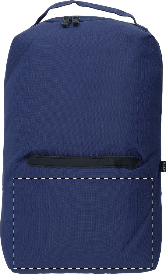 Wasserdichter RPET-Rucksack mit Reißverschlussfächern, gepolstertem Laptop- (15") und Tablet- (10") Fach, Trolleygurt, versteckter Diebstahlsicherungstasche, ergonomischen Rücken- und Schultergurten. Material: 600D RPET-Polyester. Mit RPET-Label.