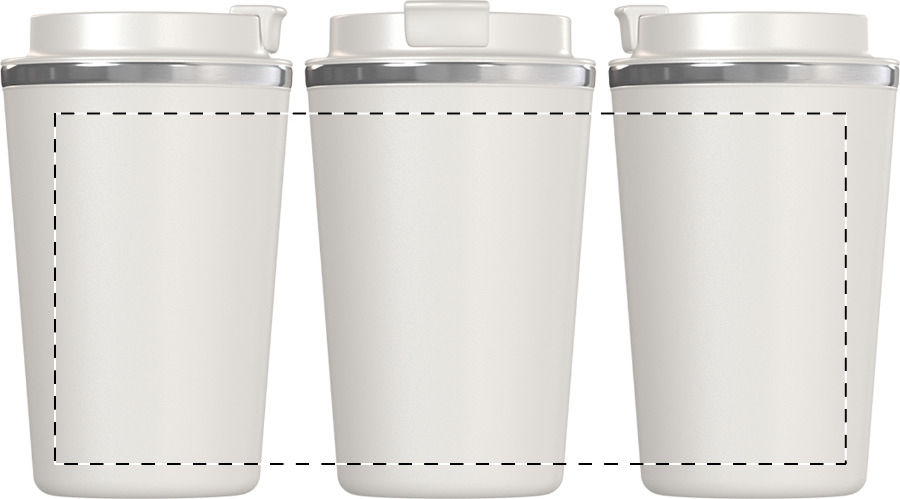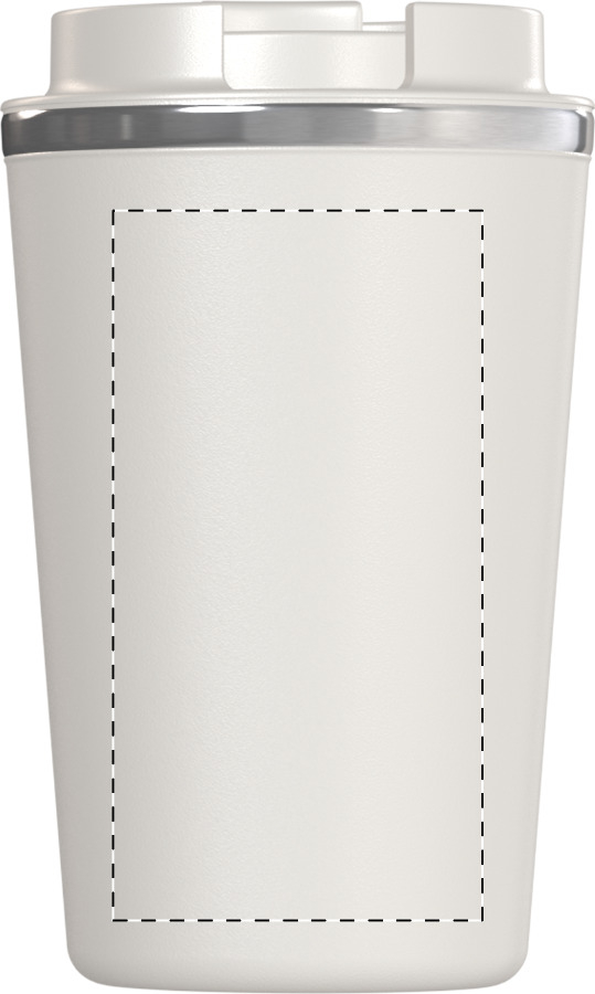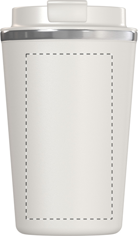 Doppelwandiger Thermobecher aus Edelstahl mit Trinkdeckel. Füllmenge: 350 ml.