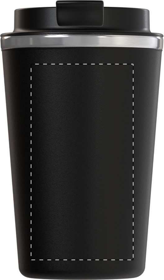 Doppelwandiger Thermobecher aus Edelstahl mit Trinkdeckel. Füllmenge: 350 ml.