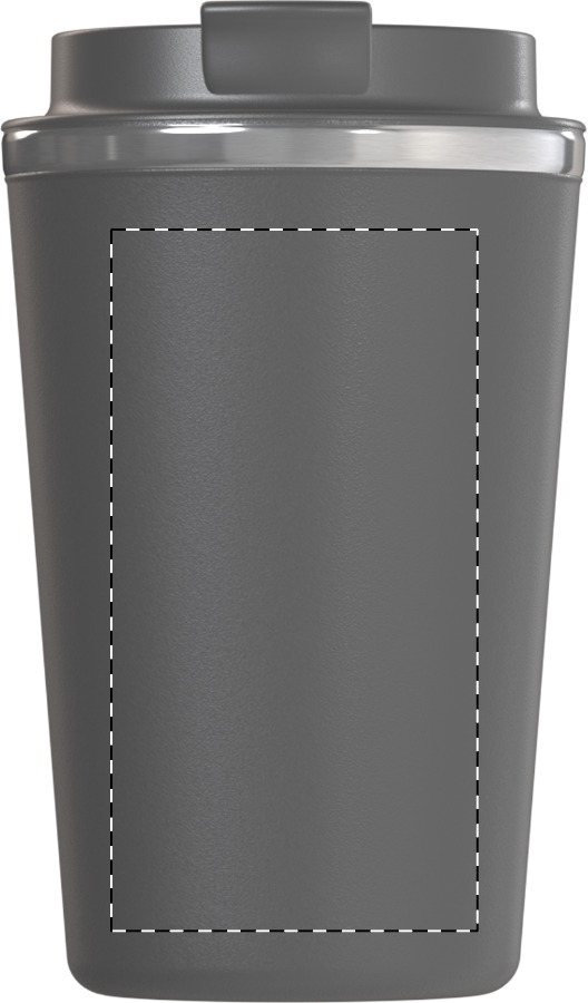 Doppelwandiger Thermobecher aus Edelstahl mit Trinkdeckel. Füllmenge: 350 ml.