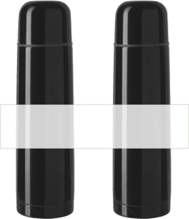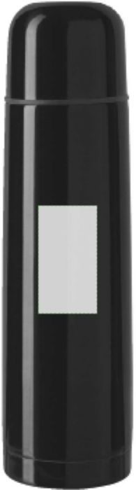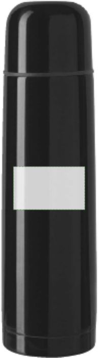 Doppelwandige Isolierflasche aus Edelstahl. Verschluss mit Henkel. Füllmenge: 500 ml. Auslaufsicher.