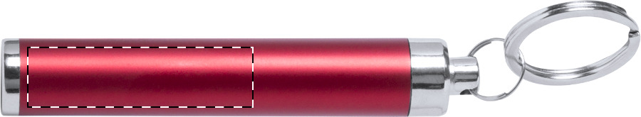 Mini-Taschenlampe mit 1 LED, Kunststoffgehäuse mit Metall-Schlüsselring. Das gravierte Logo aur dem Korpus wird beleuchtet. Inkl. Batterien (Knopfzellen).