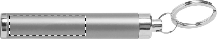 Mini-Taschenlampe mit 1 LED, Kunststoffgehäuse mit Metall-Schlüsselring. Das gravierte Logo aur dem Korpus wird beleuchtet. Inkl. Batterien (Knopfzellen).