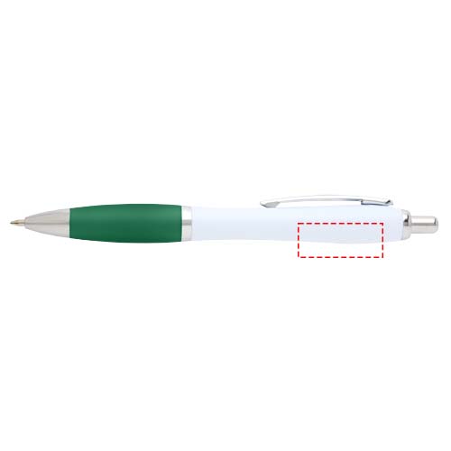 Der Nash Kugelschreiber besitzt ein elegantes, geschwungenes Design und einen weichen Griff. Er besteht aus recyceltem Kunststoff, der hart und stabil ist und dadurch eine lange Lebensdauer hat. Tintenfarbe: Schwarz. Schreiblänge: 1000 Meter. Schreibspitze: 1 mm.