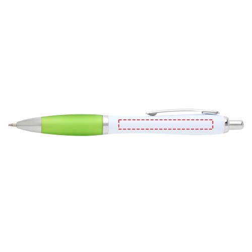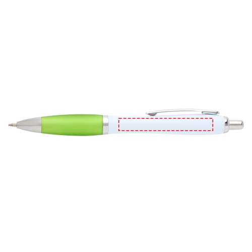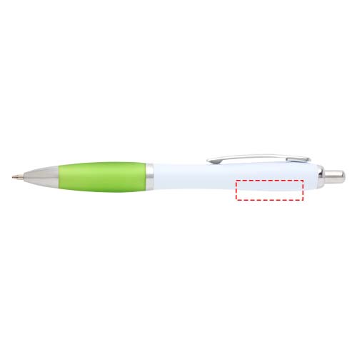 Der Nash Kugelschreiber besitzt ein elegantes, geschwungenes Design und einen weichen Griff. Er besteht aus recyceltem Kunststoff, der hart und stabil ist und dadurch eine lange Lebensdauer hat. Tintenfarbe: Schwarz. Schreiblänge: 1000 Meter. Schreibspitze: 1 mm.