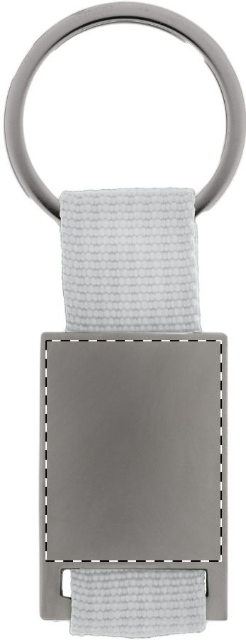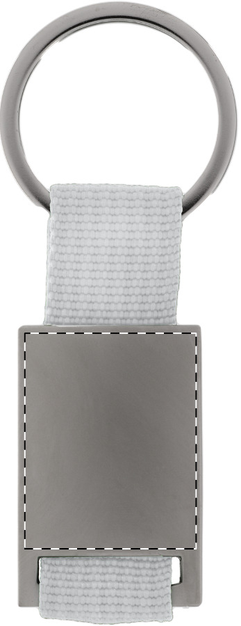 Schlüsselanhänger aus Metall und Polyester.