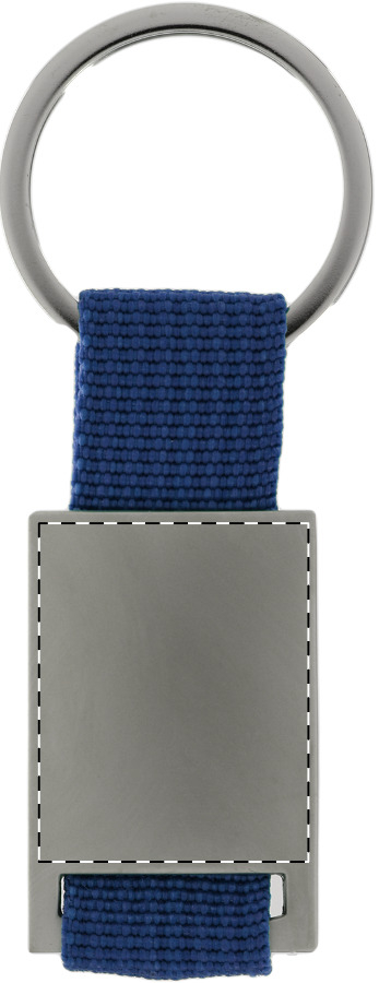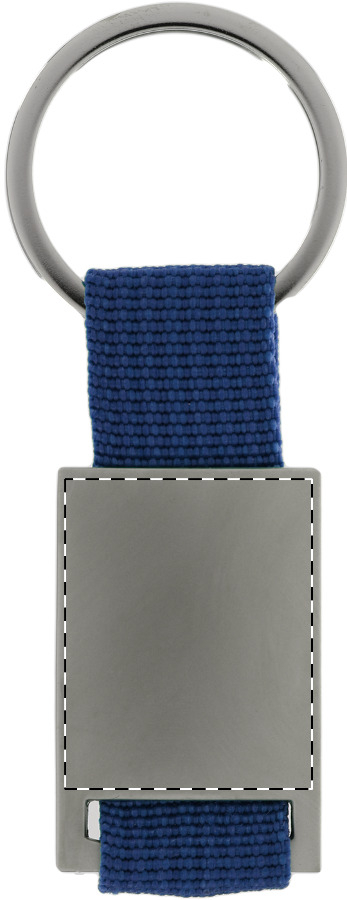 Schlüsselanhänger aus Metall und Polyester.