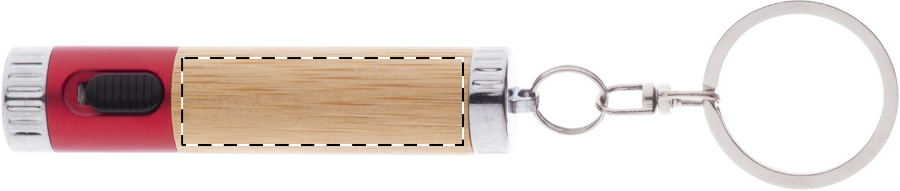Mini-Taschenlampe aus Bambus und recyceltem ABS Kunststoff mit 1 LED und Metallschlüsselring. Inkl. Knopfzellenbatterie.