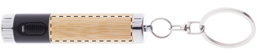 Mini-Taschenlampe aus Bambus und recyceltem ABS Kunststoff mit 1 LED und Metallschlüsselring. Inkl. Knopfzellenbatterie.
