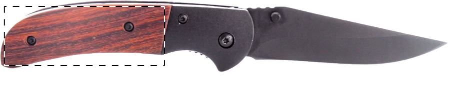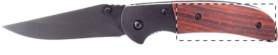 Taschenmesser aus Edelstahl mit Holzgriff und Sicherheitsverschluss.