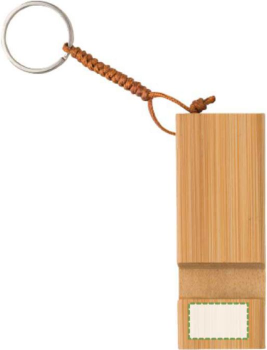 Telefonständer aus Bambus mit Schlüsselanhänger.