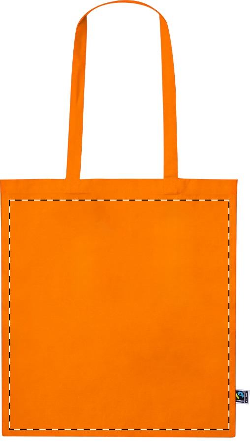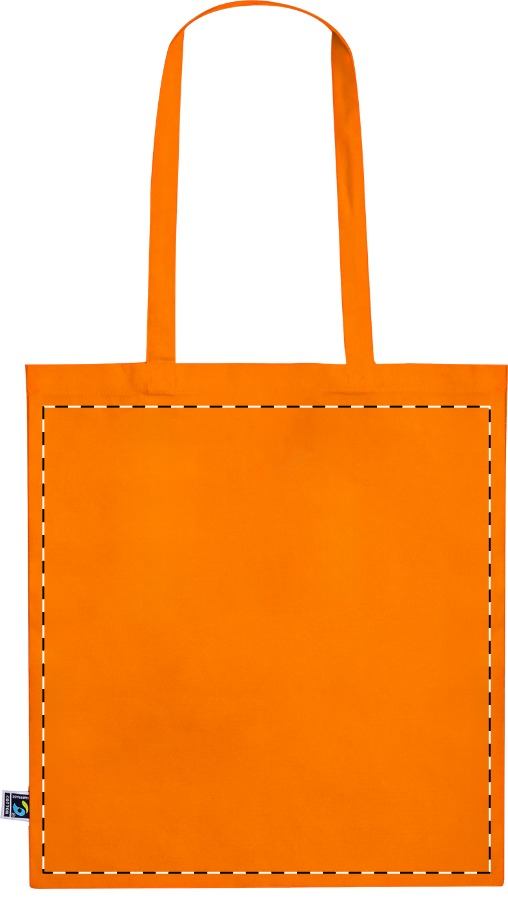 Farbige Einkaufstasche mit langen Henkeln aus Fairtrade-Baumwolle. Material: 100 % Fairtrade-Baumwolle, 180 g/m². Mit Fairtrade-Label.
