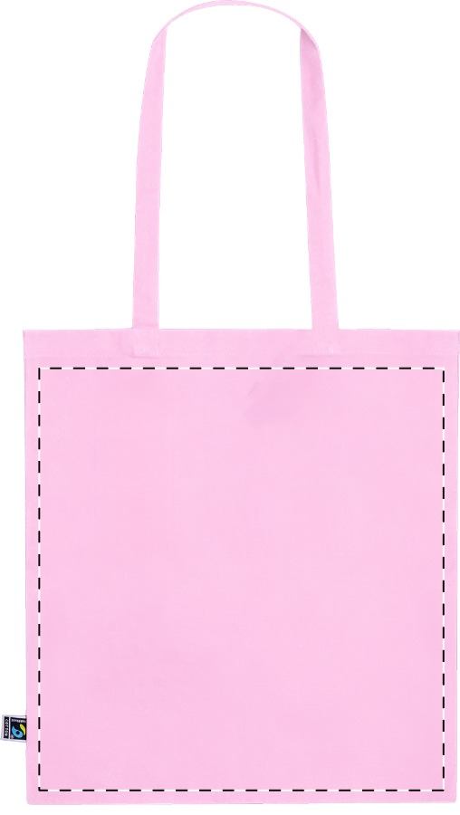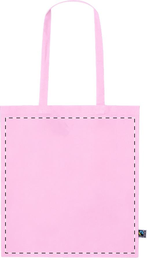 Farbige Einkaufstasche mit langen Henkeln aus Fairtrade-Baumwolle. Material: 100 % Fairtrade-Baumwolle, 180 g/m². Mit Fairtrade-Label.