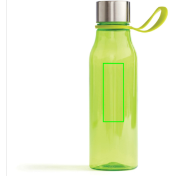 Wasserflasche aus BPA-freiem Triphenylmethan. Durch die Schlaufe am Verschluss lässt sich die Flasche leicht an Trainingsgeräte hängen, durch die schmale Form passt die Flasche in die meisten Becherhalter. Die Flasche lässt sich leicht reinigen und zudem leicht bedrucken. Nur Handwäsche. Inhalt: 600ml