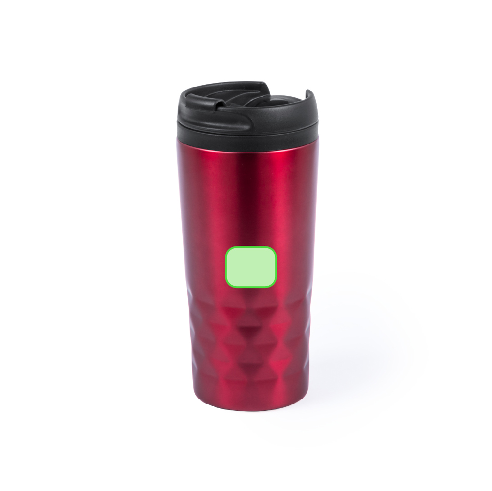 Edelstahl-Trinkbecher mit 310 ml Fassungsvermögen. Mit leicht zu öffnendem Spenderdeckel und weichem, schaumgepolstertem Boden. Es ist ideal für Ihren Schreibtisch, Tisch oder jede andere Oberfläche, auf der Sie in Ruhe Ihr Lieblingsgetränk genießen können. Mit origineller Hochglanzoberfläche und Rautendesign.