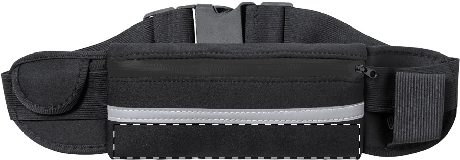 Gürteltasche aus Softshell mit einem Reißverschlussfach, einer kleinen Tasche, elastischem Flaschenhalter, reflektierendem Band und verstellbarem Gurt. Nur für Werbezwecke, das Produkt erfüllt nicht die Eigenschaften von persönlicher Schutzausrüstung.